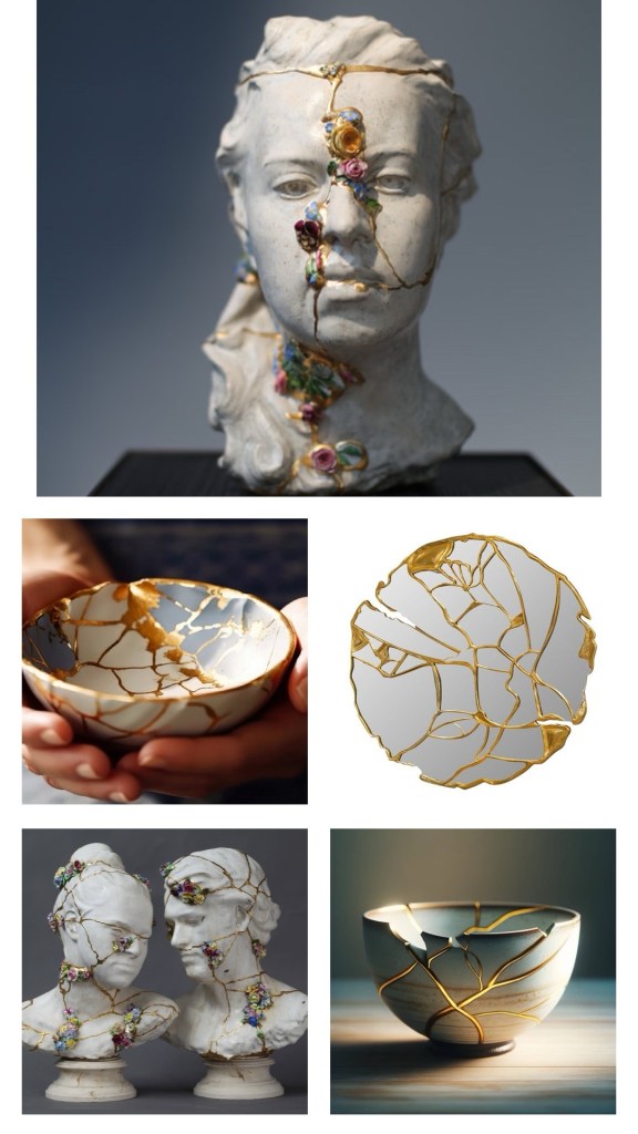 « Le kintsugi est un art japonais ancestral qui consiste à réparer un objet brisé afin de le rendre encore plus beau qu’il ne l’était auparavant. L’idée derrière cet art est qu’une fêlure n’est pas un défaut, mais une opportunité. La vie est une succession d’épreuves, et certaines peuvent nous causer des blessures profondes. On a l’impression que jamais elles ne cicatriseront, mais lorsque nous puisons en nous la force nécessaire pour surmonter ces épreuves et nous reconstruire, nous en ressortons encore plus forts qu’auparavant.